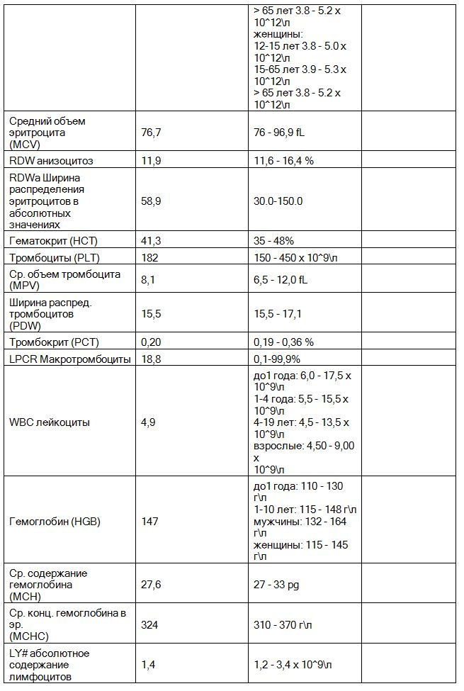 501 Общий анализ крови (полный)(СОЭ,Le,Er,Hb,L-формула, тромбоциты, эритроциты)