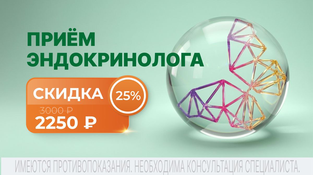 ПРИЕМ ВРАЧА-ЭНДОКРИНОЛОГА СО СКИДКОЙ 25%