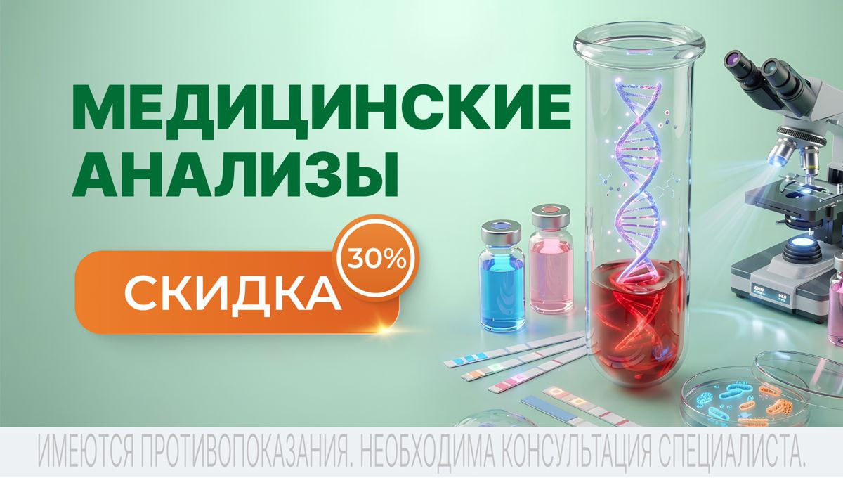 До 28 февраля 2026 г. действует скидка 30% на ряд популярных анализов