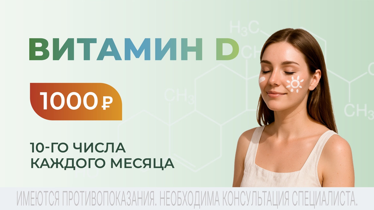 витамин D со скидкой 50% при прохождении одного из наших лабораторных чекапов. Данные анализы позволят выявить возможные слабые места в иммунной системе и принять меры для укрепления здоровья.