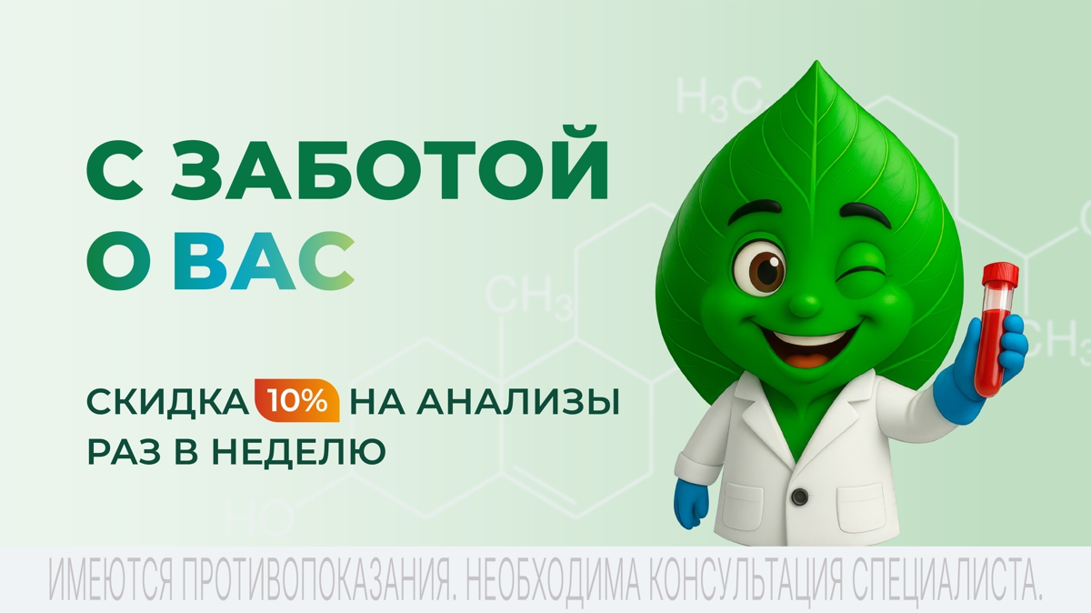 - Скидка не распространяется на ряд анализов, взятие биоматериала и акционные предложения.