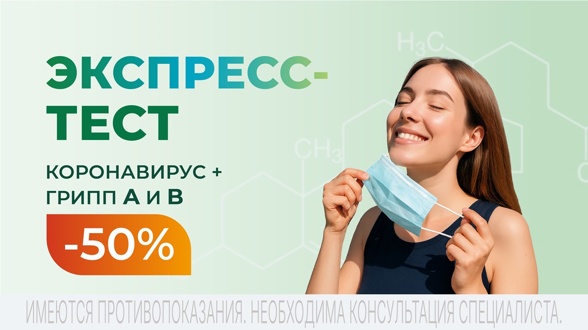 Скидка 50% на экспресс-тест коронавируса и грипп А и В