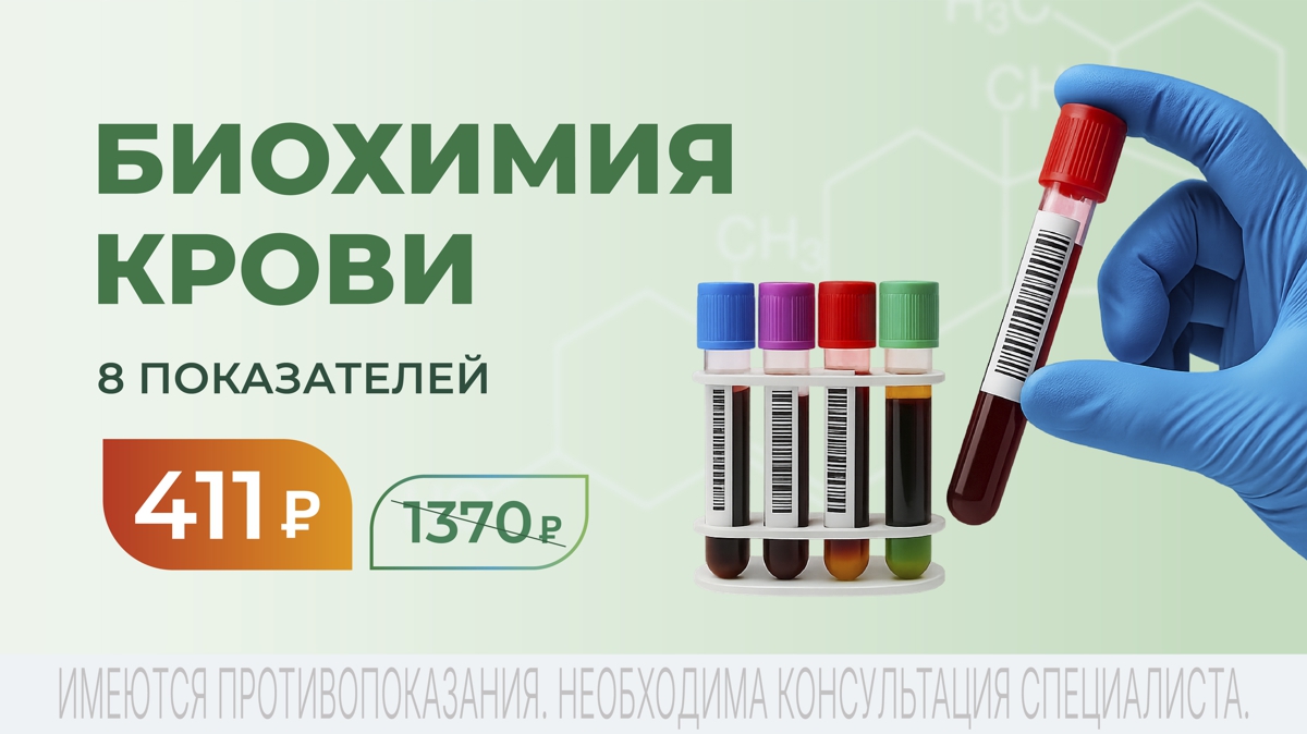 До 31 декабря приглашаем вас сдать биохимический анализ крови по специальной цене - 411 рублей.