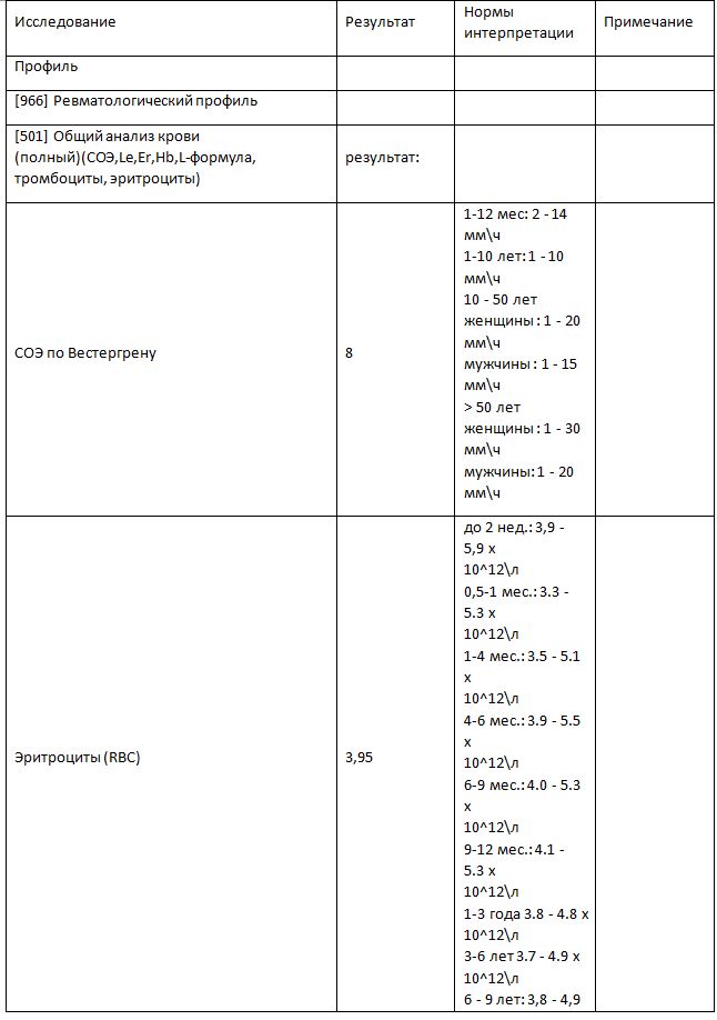 501 Общий анализ крови (полный)(СОЭ,Le,Er,Hb,L-формула, тромбоциты, эритроциты)