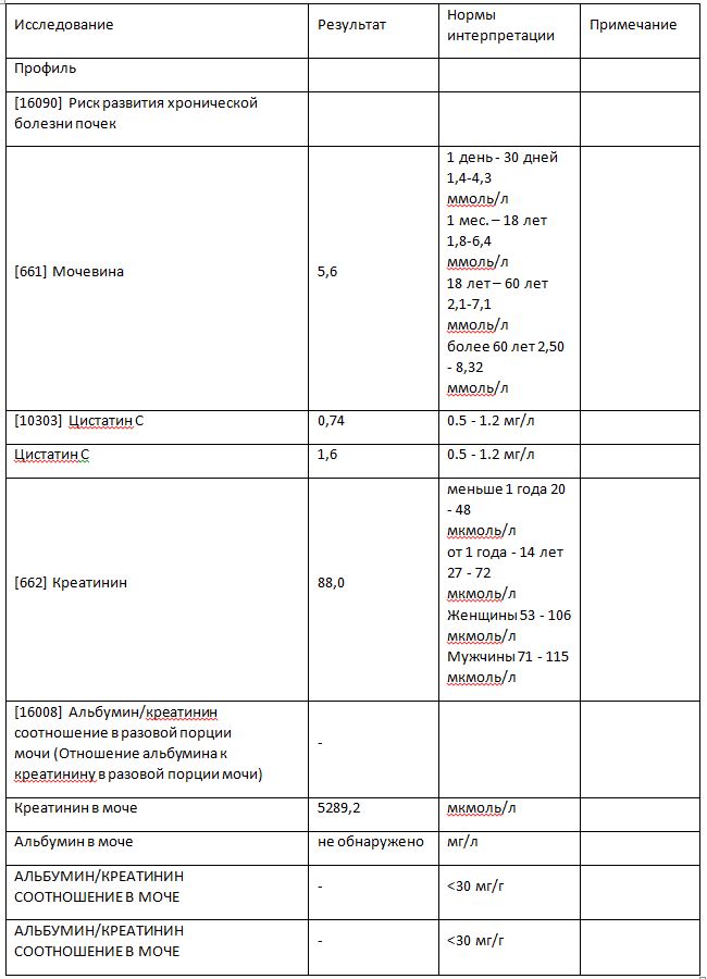 16008 Альбумин/креатинин соотношение в разовой порции мочи (Отношение альбумина к