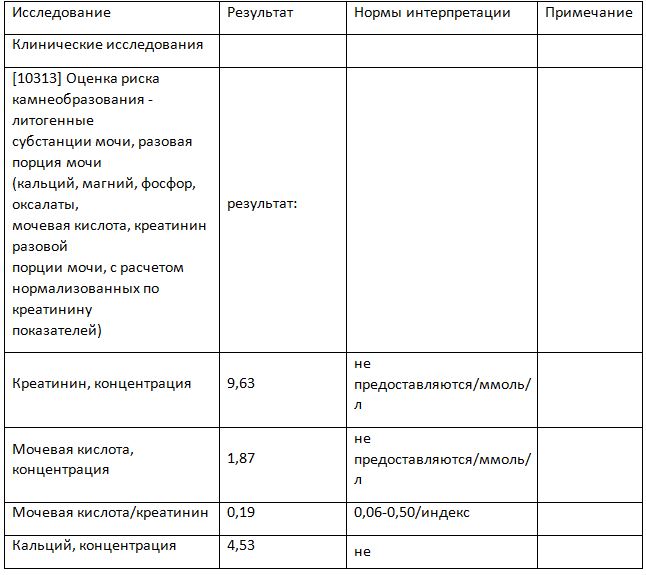 Подбор лечения: По результатам исследования можно назначить диету, медикаментозную терапию или другие меры для снижения концентрации камнеобразующих веществ.