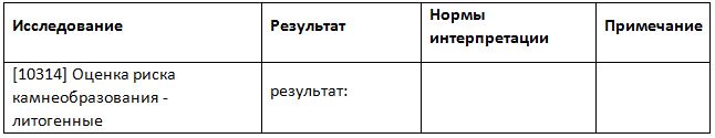 - определение химического состава мочевого камня методом инфракрасной спектроскопии (при наличии выделенного камня) (10301)