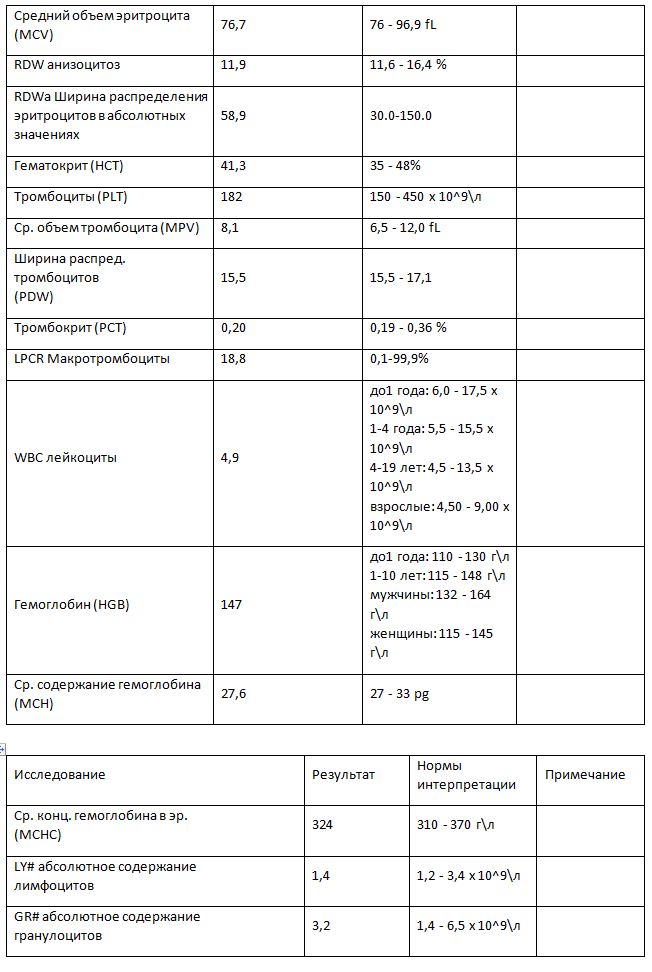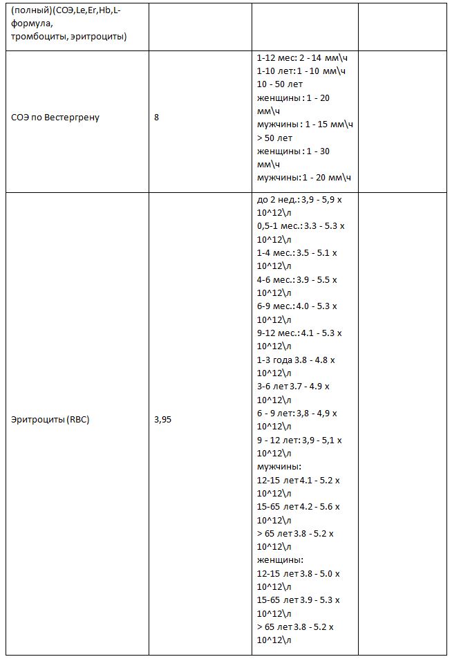 501 Общий анализ крови (полный)(СОЭ,Le,Er,Hb,L-формула, тромбоциты, эритроциты)