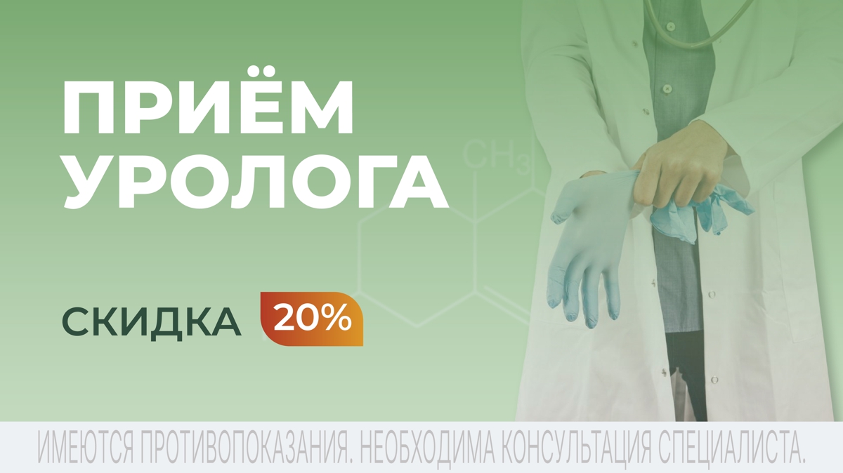 СКИДКА 20% НА ПРИЕМ ВРАЧА-УРОЛОГА