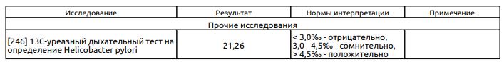 Результатом исследования является показатель, отражающий разницу в процентном содержании 13С/12С до и после приема мочевины – DOB, который измеряется в промилле ‰.